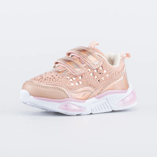 52% Полиэстер,45% Полиуретан,3% Стразы_Дышащие, легкие, удобные кроссовки Котофей. Основные детали верха: носочная часть, элементы крепления и часть задника изготовлены из качественной искусственной кожи с блестящим напылением, основа выполнена из сетчатого текстиля. Модель декорирована блестящим напылением и аппликацией. Фиксация на ноге с помощью 2 ремешков на липучках, что позволяет комфортно регулировать посадку по высоте подъема и полноте стопы, надевать и снимать такую обувь очень легко. Встроенные в подошву светодиоды мигают при ходьбе. Кроссовки Котофей – лучшее решение для активных детей.