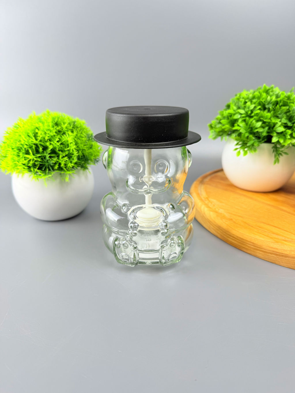 Банка для мёда стекл. 275 мл "МИШКА" с ложкой-веретено шляпа чёрная 475-98505