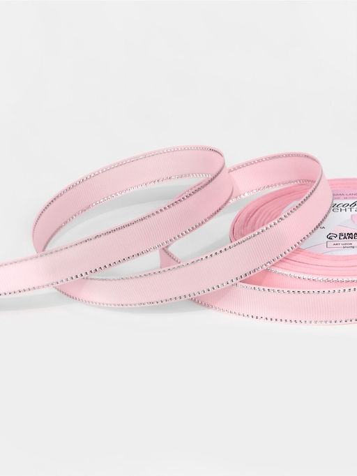 • Цена за 2 шт. Лента репсовая, с серебряным люрексом, 15 мм, 23±1 м, светло-розовая №004