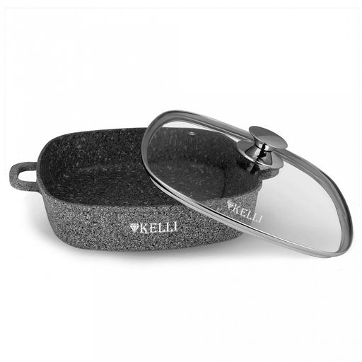 Сотейник из высокопрочного алюминия "Kelli" 4,5л, д28см, мраморное покрытие, индукционное дно, жаропрочная стеклянная крышка с паровыпуском, съемные силиконовые накладки для ручек (Китай) Подходит для всех видов плит, включая индукционную.