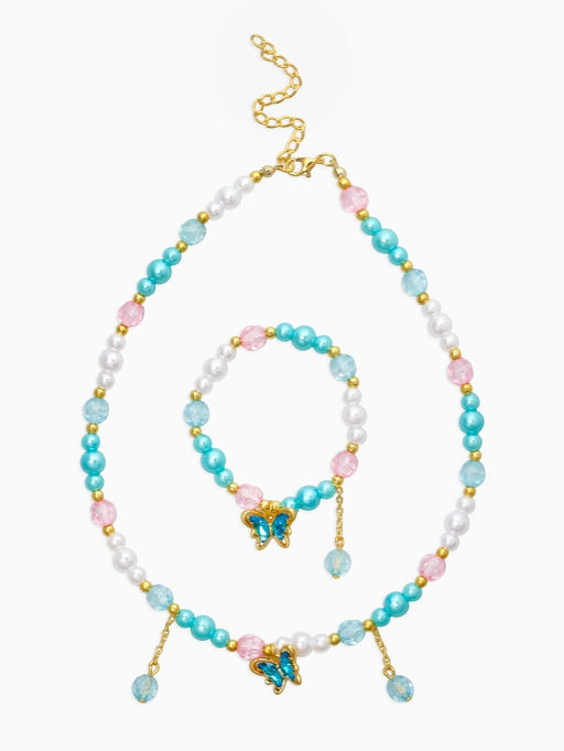Набор детский «Выбражулька. Бабочка с бусиной», 2 предмета: бусы, браслет, розовый, голубой