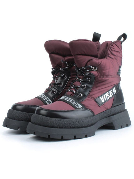02-FAS21-2Z VINOUS/BLACK Дутики женские (искусственная кожа, плащевая ткань, шерсть)