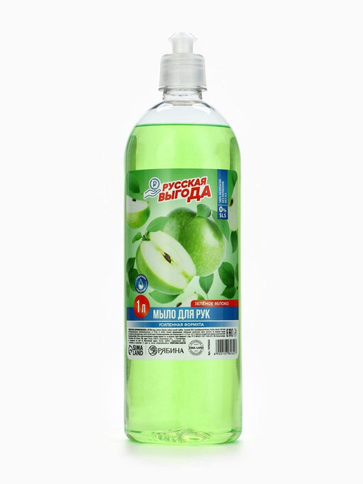 • Цена за 2 шт. Жидкое мыло для рук РУССКАЯ ВЫГОДА, аромат зеленое яблоко, 1000 мл
