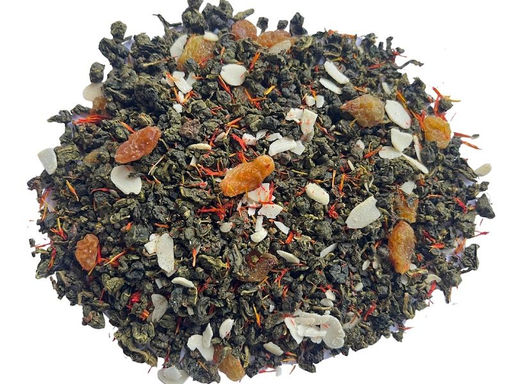 Бленд улуна высшего сорта, винограда, лепестков сафлора и кусочков ореха. С ароматом миндальной выпечки.
