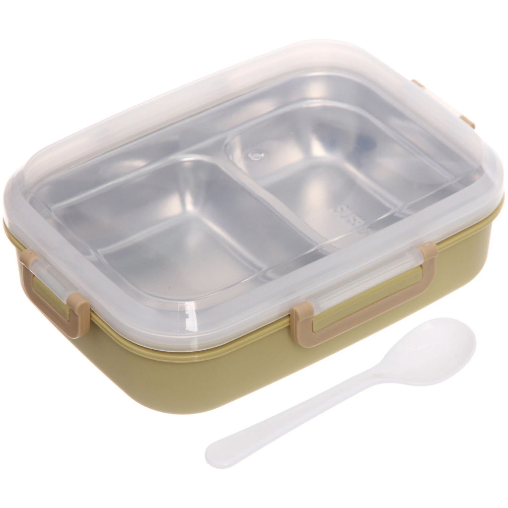 Ланч-бокс пластиковый "SEGRETO" (2отделения с ложкой) 20*15*7см  оливковый­