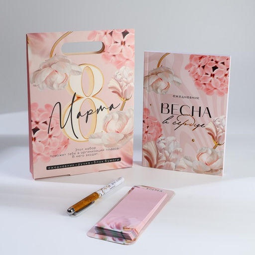 Подарочный набор ежедневник, блок бумаги и ручка 8 марта