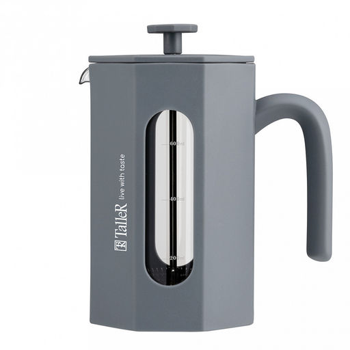 Френч-пресс пластмассовый корпус 800мл, колба из жаропрочного боросиликатного стекла, пресс-фильтр из нержавеющей стали, серый, цветная коробка, "TalleR" (Китай)
