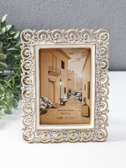 • Фоторамка полистоун 10х15 см "Тюльпаны и жгуты" белая с золотом 15,5х1,5х20,5 см