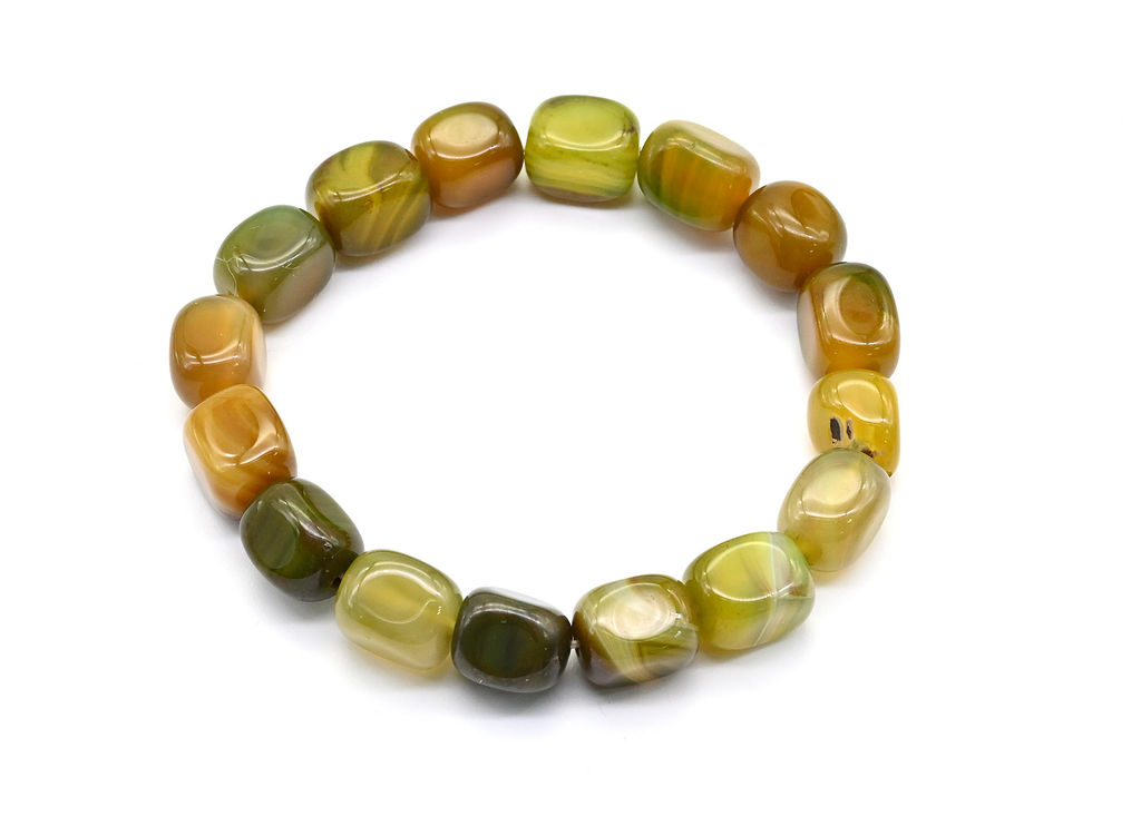 Браслет из агата тонированного прямоугольник 9*12мм цв.оливковый