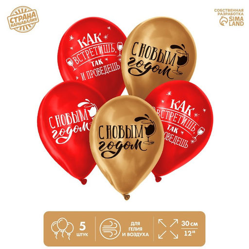 Шар латексный 12" "С Новым Годом, как встретишь, так его и проведешь", 5 шт.