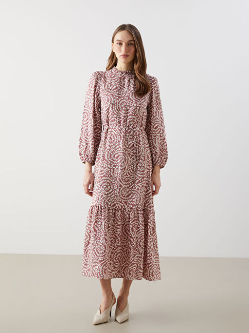 • Dik Yaka Desenli Elbise