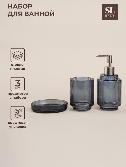 Аксессуары для ванной SL Home, 3 предмета: дозатор, мыльница, стакан