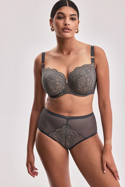 Трусики-слип Lusso с завышенной посадкой и широким бочком. Выполнены из эластичной сетки и красивого зеленого кружева. Ластовица хлопковая.­