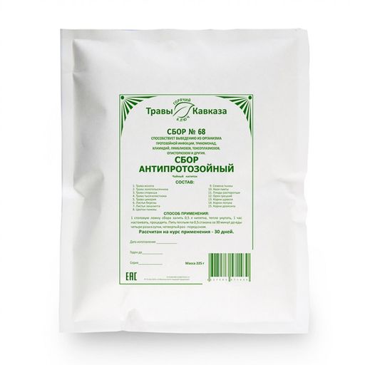 Применяется при состояниях, вызванных протозойной инфекцией: трихомонадами, хламидиями, лямблиозом, токсоплазмозом, описторхозом и другими.Сбор выполнен из растений, которые убивают инфекцию, вирусы, грибки, паразитов. Сбор способствует истреблению лямблии в печени, снимает воспаления печени, восстанавливает ее функцию. Также сбор убивает личинки аскарид, острицы во всех внутренних органах.В составе сбора присутствуют травы с хорошим противоглистным эффектом. Они способствует выведению паразитов не только из желудочно-кишечного тракта, но и из других внутренних органов, чистят лимфу, кровь. Сбор также эффективен при лечении трихомонадного кольпита, хламидии и всех паразитов живущих в организме.