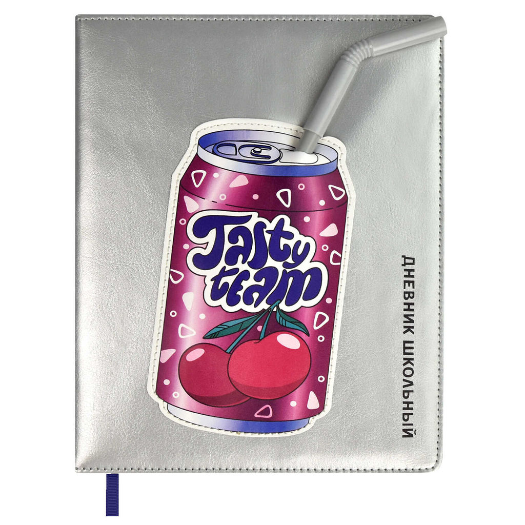 Дневник школьный с ручкой в комплекте арт. 66381 / 15 ВИШНЯ (кожзам: А5+; твёрдый переплёт с поролоном, материал обложки: искусственная кожа "Сариф металлик"; декор: аппликация из искусственной кожи, полноцветная печать; способ крепления блока: ниткошвейный; вн. блок: 48 л., белый офсет 80 г/м?, печать в одну краску, справочный материал: универсальная шпаргалка; отделка среза: окрашивание пантоном; закладка: одно ляссе; форзац: печать в одну краску; особенности: в комплекте с ручкой; индивидуальная упаковка: промовкладыш + ПЭТ-пакет)