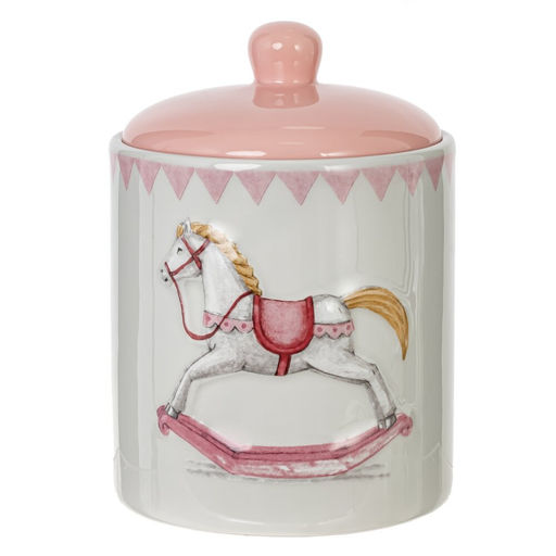 Керамическая ёмкость для сыпучих продуктов с изображением лошадки-качалки это не только функциональный, но и декоративный элемент кухни. Изготовленная из прочной керамики, она идеально подойдёт для хранения сахара, соли, круп, чая, кофе или других продуктов. Очаровательный рисунок в виде лошадки-качалки придаёт изделию винтажный шарм и создаёт атмосферу уюта. Плотно прилегающая крышка помогает сохранять свежесть и аромат содержимого, защищая от влаги и посторонних запахов. Такая ёмкость станет стильным дополнением интерьера кухни или прекрасным подарком для ценителей красивой посуды. Подходит как для повседневного использования, так и для оформления тематических фотозон, сервировки или подарочных наборов.