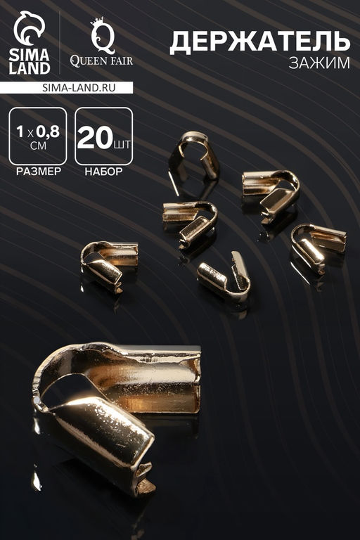 • Цена за 2 шт. Концевик-зажим СМ-296-2, набор 20 шт., 1?0.8?0.4 см, цвет золото