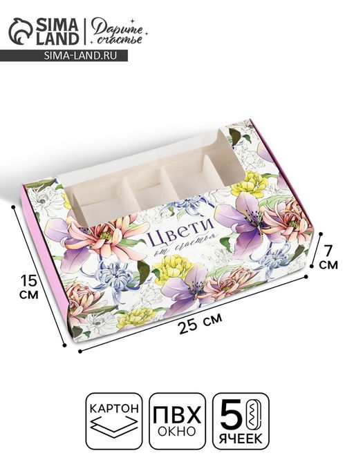 • Цена за 5 шт. Коробка для эклеров с вкладышами «Цвети», 25×15×7 см