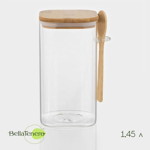 Банка для сыпучих продуктов BellaTenero «Эко» изготовлена из стекла. Крышка с силиконовым уплотнителем защитит продукты от влаги и посторонних запахов.Ёмкость подойдёт для хранения круп, специй, макаронных изделий, сахара, муки и бобовых.Благодаря лаконичному внешнему виду баночка впишется в любой интерьер и станет универсальным украшением кухни. Набор: Нет. Форма: Квадратная. Объём, л: 1.45. В наборе, шт.: 2. Объём, мл: 1450. Вид упаковки: Коробка картонная. Рисунок: Нет. Крышка: Да. Герметичная крышка: Да. Для детей до 3 лет: Нет. Можно мыть в посудомоечной машине: Да. Можно использовать в СВЧ-печи: Нет. Текстура: Гладкая. Назначение: Для спагетти. Назначение: Для сыпучих. Особенности: Без особенностей. Особенности: С ложкой. Размеры товара: 10/19/11.5. Примечание: В наименовании указан полный объём с замером до края.Полезный объём будет отличаться в меньшую сторону от указанного..