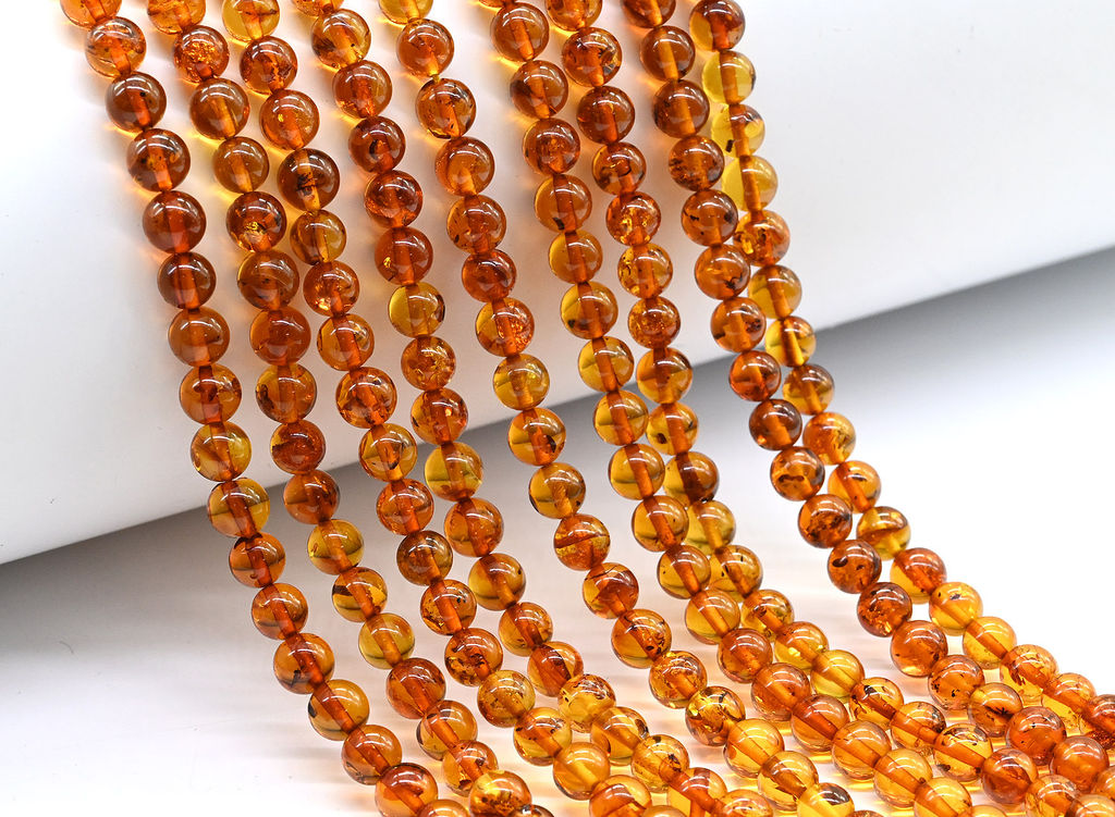 Бусины для рукоделия из натурального янтаря в форме шарика диаметром 5мм.