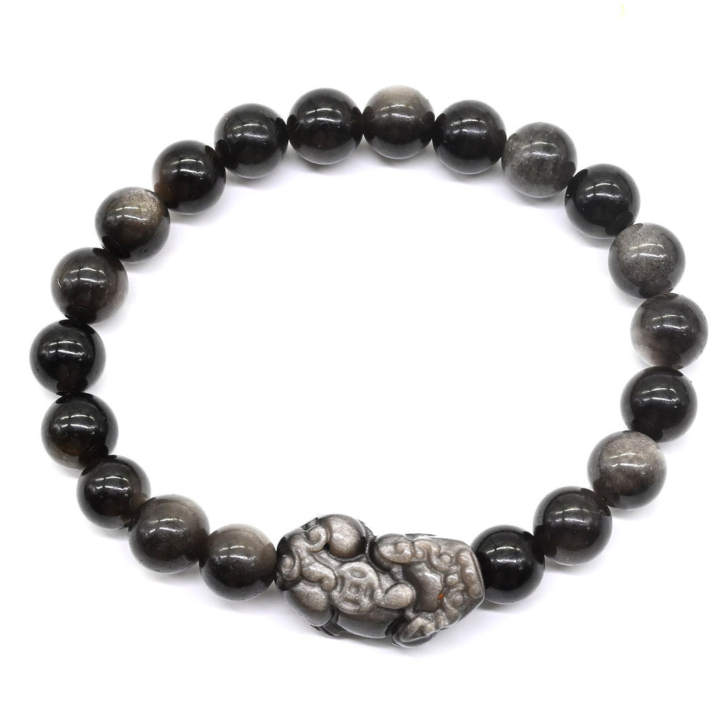 Обсидиан иризирующий браслет шарик 8мм с Драконом