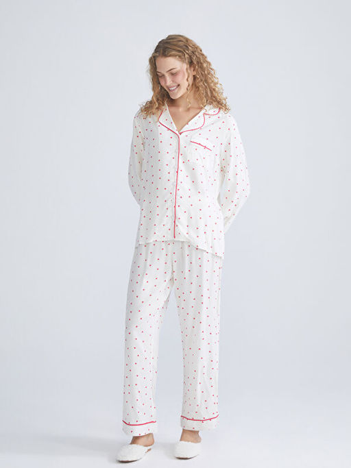 G?mlek Yaka Bask?l? Kad?n Pijama Tak?m?