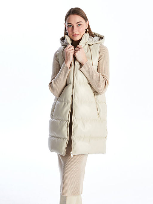 Kap??onlu D?z Deri G?r?n?ml? Kad?n ?i?me Yelek