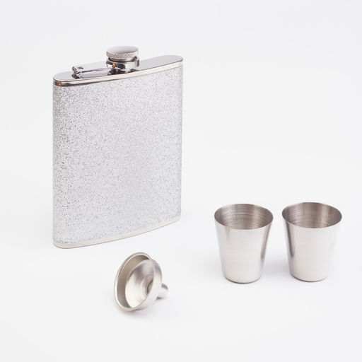 • Подарочный набор 4 в 1, фляжка 240 мл, 2 стопки, воронка, нержавеющая сталь, серебристый