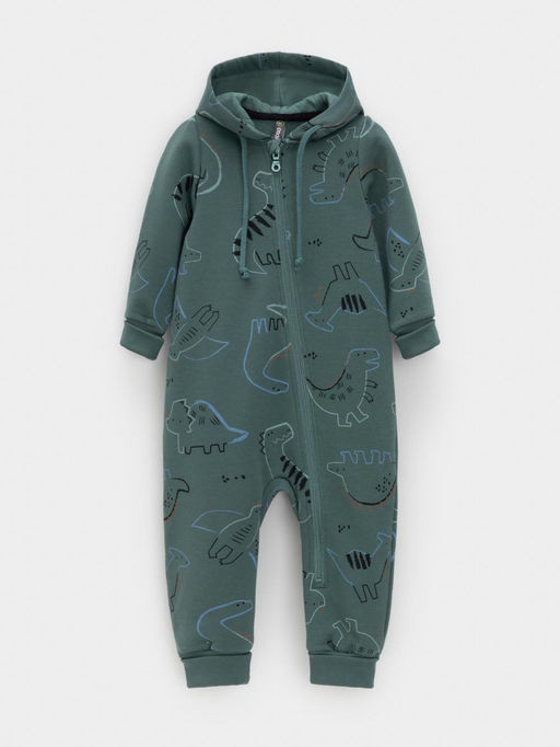 Комбинезон с капюшоном для мальчика. Изготовлен из высококачественного петельчатого футера трёхнитки. В составе 80% натурального хлопка и 20% полиэстера, при этом полиэстер ввязан внутрь по особой технологии и не соприкасается с кожей. Застёгивается на молнию. В капюшоне мягкий подклад из гладкого материала супрем. Манжеты и пояс выполнены из эластичного полотна. Изделие сохраняет цвет и форму после многократных стирок. Все трикотажные полотна производятся в соответствии с нормами швейцарского сертификата ЭкоТекс.. Состав: 80% хлопок, 20% полиэстер