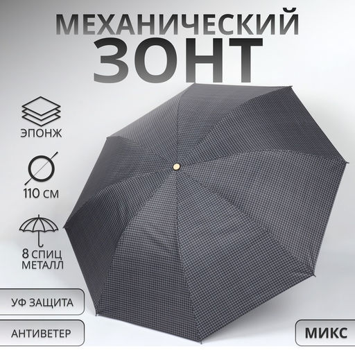 Зонт механический «Мелкая клетка», эпонж, 4 сложения, 8 спиц, R=48/55 см, d=96 см, МИКС