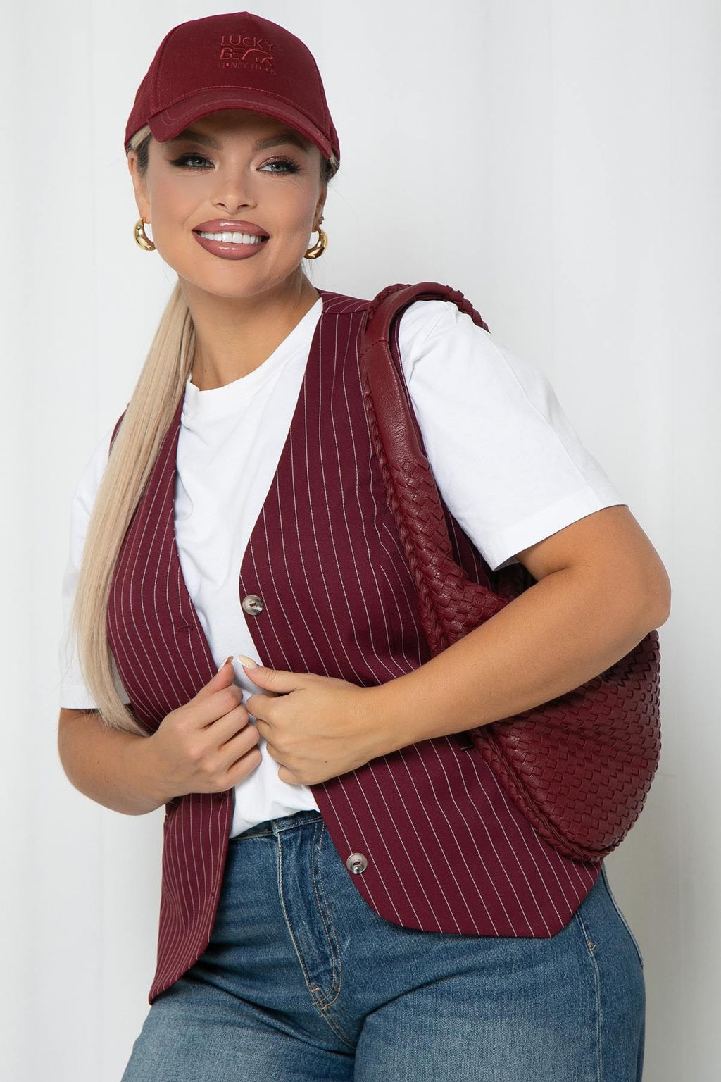 Жилет из костюмной ткани в полоску.