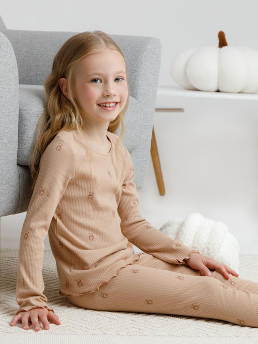 Трикотажная пижама в рубчик из натурального хлопка. Джемпер с длинными втачными рукавами и лосины с эластичной резинкой в поясе. Оригинальная набивка выполнена из стойких текстильных гипоаллергенных красителей. Изделие сохраняет цвет и форму после многократных стирок. Все трикотажные полотна производятся в соответствии с нормами швейцарского сертификата ЭкоТекс.. Состав: 100% хлопок