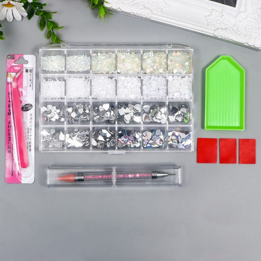 • Набор для творчества «Белый», набор 24 вида, стразы, полубусины, инструмент, пинцет, подставка, мат