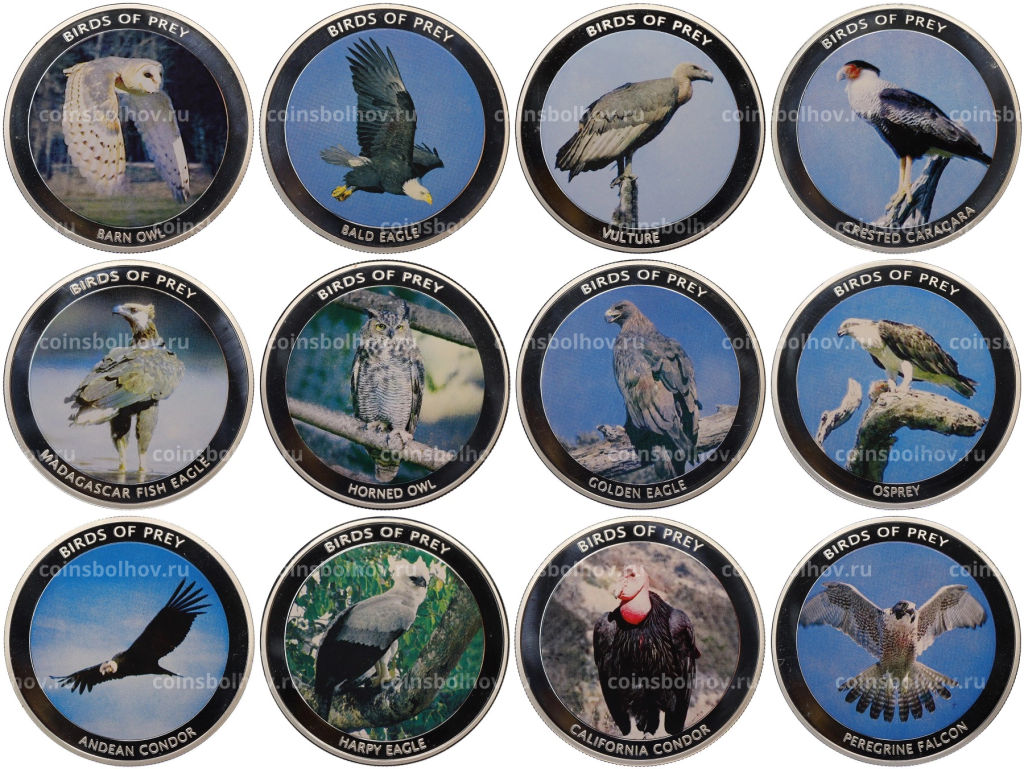 • Набор из 12 монет 10 квача 2010 года Малави Хищные птицы
