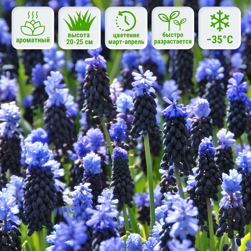 Описание товара С приходом весны с каждым днём всё больше хочется ощущать красочность оживившейся природы. В этом нам поможет мускари Latifolium (Латифолиум), который сочетает в себе изящество и грацию.