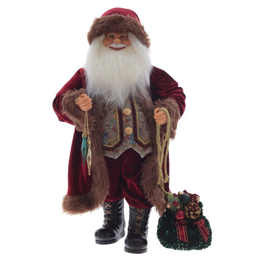 Декоративная игрушка Дед Мороз "Величественный Праздник", воплощает в себе всю красоту и волшебство зимних праздников. Статуэтка высотой 90 см, одета в роскошную бархатную шубу бордового цвета, украшенную мягким мехом, что придает ей особый статус и величие.