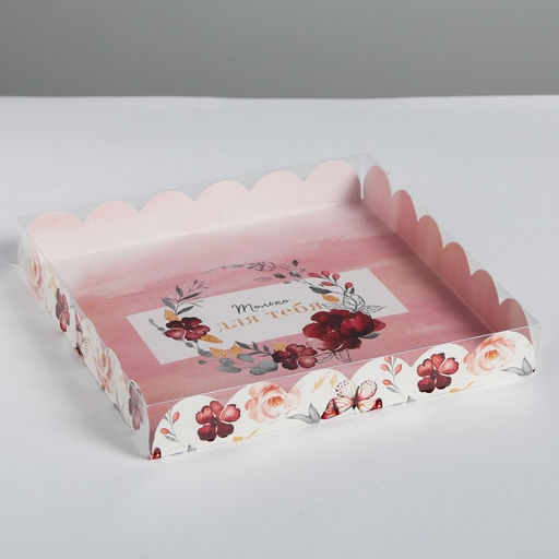 Цена за 5 шт. Коробка для печенья, кондитерская упаковка с пластиковой крышкой, Только для тебя, 21?21?3 см