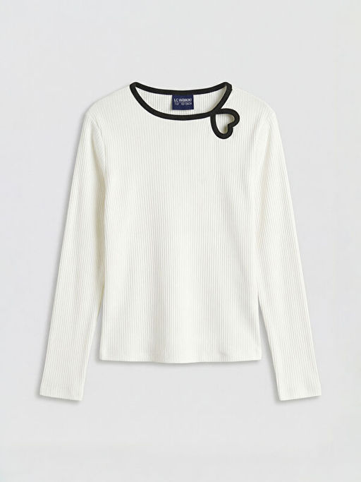 Bisiklet Yaka Kalp Detayl? K?z ?ocuk Ti??rt