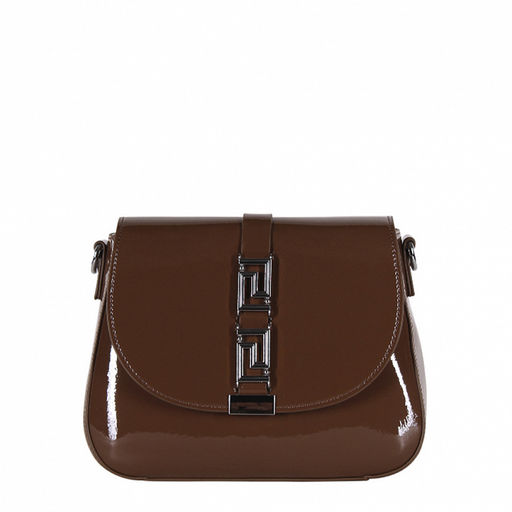 Сумка кросс-боди, выполнена из натуральной лаковой кожи. Декорирована пряжкой на клапане. Дополнена серебристой фурнитурой. Данная модель закрывается на клапан, носится на плече или в руке. В комплекте предусмотрен ремень с регулировкой длины и съемная ручки. Каркас полужесткий.
