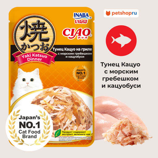 • Паучи для кошек Yaki Katsuo Dinner 50 гр.Тунец Кацуо с гребешком и кацуобуси RU701