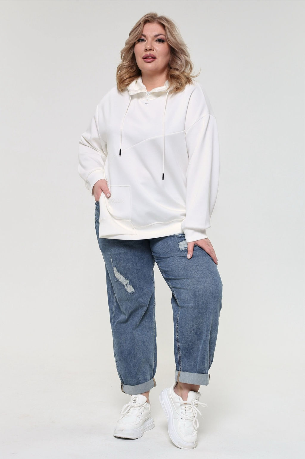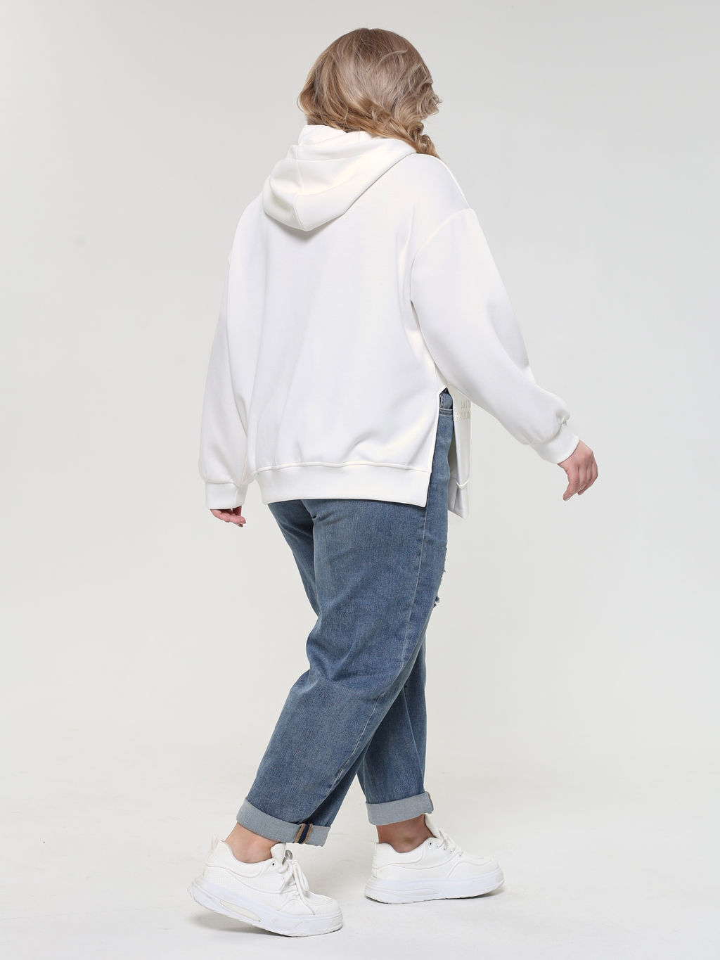 Удобное худи из высококачественного трикотажного полотна в стиле "оверсайз". Круглый вырез дополнен объемным капюшоном на молнии. Рукава с широкой спущенной проймой полной длины по низу оформлены манжетами. Удобные и мягкие манжеты не будут растягиваться и доставлять дискомфорт. Нижний край худи оформлен широкой притачной резинкой в рубчик, что обеспечивает оптимальную посадку по фигуре. Объемный карман сбоку добавляет модели оригинальности и практичности. Уютное худи отлично подойдёт как для дома и отдыха, так и для занятий спортом. Модель идеально впишется в любой гардероб и может стать Вашей любимой базовой вещью.
