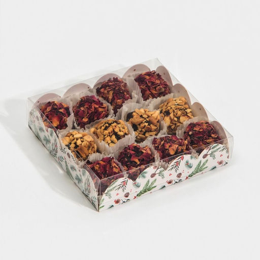Цена за 5 шт. Коробка для кондитерских изделий новогодняя с пластиковой крышкой «Ёлка», 13×13×3 см