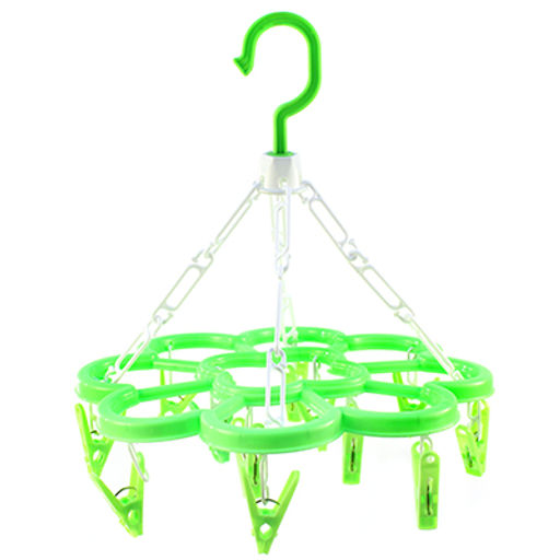 Вешалка-сушилка пластмассовая с прищепками 12 штук д28см подвесная, складная "Карусель ромашка" цвета микс (Китай)