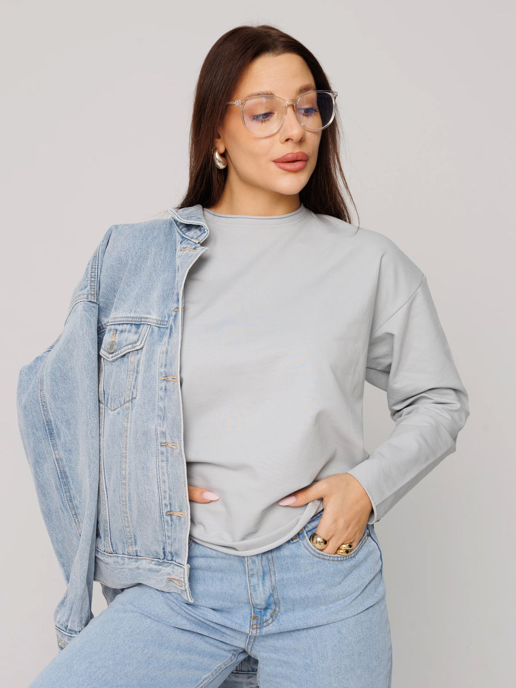 Женский лонгслив из футера 2-х нитки серебристый ВК-25 (61)
