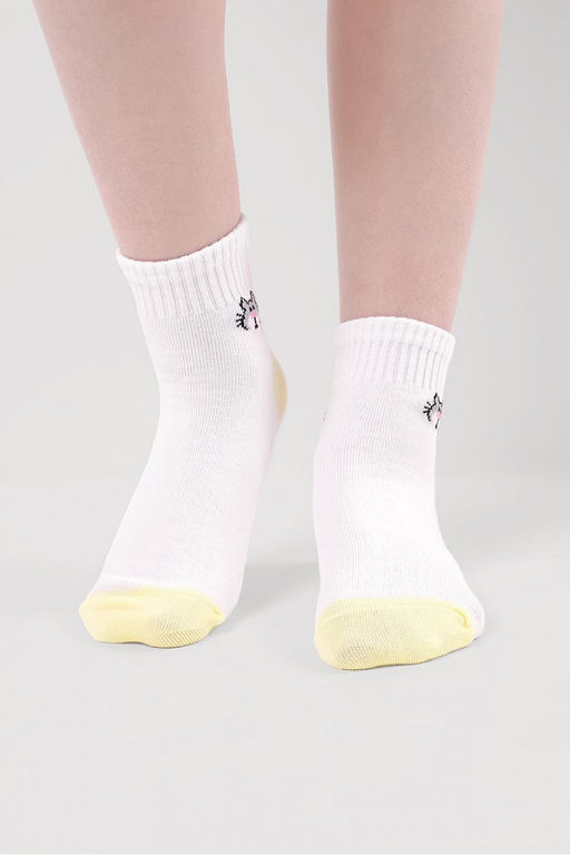 Носки изготовлены из мягкого и дышащего хлопка, что обеспечивает комфорт и приятное ощущение на коже. Очаровательный рисунок кошки добавляет игривости в образ, делая эти носки идеальным дополнением к повседневной одежде или домашнему стилю.