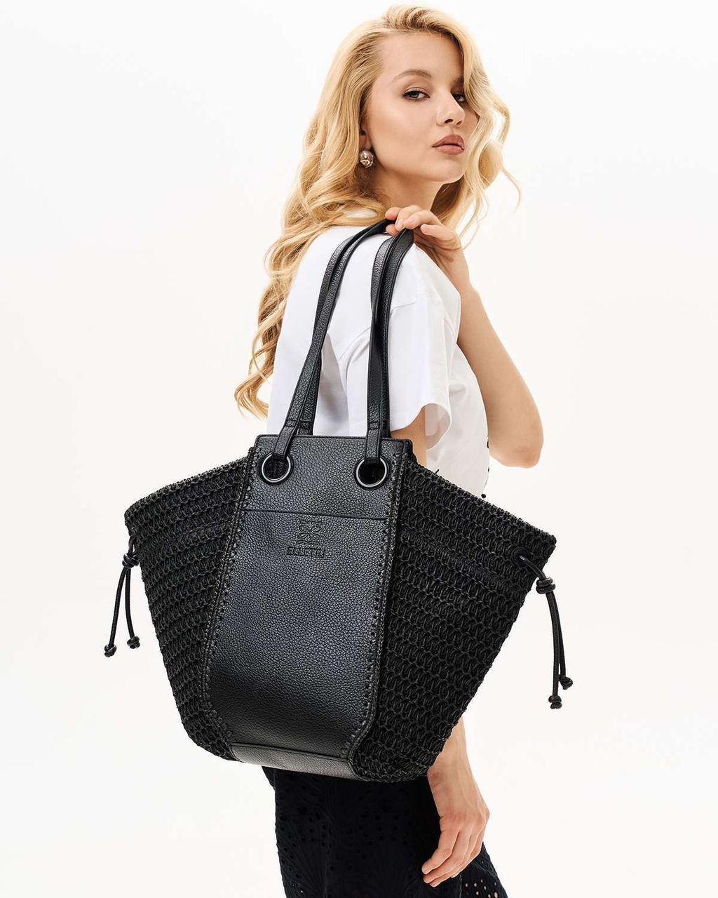 Женская плетёная сумка из рафии и кожи идеальный выбор на лето. Лёгкая, вместительная, удобная, отлично подойдёт как пляжная сумка, сумка-шоппер или аксессуар для отдыха. Изготовлена из прочного материала, имитирующего солому и ротанг. Натуральная текстура и универсальный черный цвет легко сочетаются с летним гардеробом. Эстетичная сумка с удобными ручками длиной 29 см позволяют носить её на плече. Внутри сумки тоут подкладка с удобными карманами, с застежкой на кнопке. Подходит для пляжа, города, отпуска и путешествий. Сочетает в себе стиль и практичность. Приобретая эту летнюю сумку вы подчеркнёт ваш стиль и она станет любимым аксессуаром сезона! Ширина: 37 см. Длина: 33 см. Высота: 33 см.­