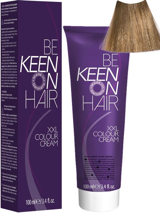 Крем - краска для волос придает яркость и невероятный блеск волосам, окрашивает равномерно по всей длине, устойчива к выгоранию и вымыванию. Содержит молочный протеин и кератин, делающие окрашивание безопасным. 108 популярных цветовых оттенков. Кислотность 9,5 11,5 ПРИМЕНЕНИЕ: Смешать в неметаллической посуде крем-краску KEEN COLOUR CREAM XXL с крем-окислителем KEEN CREAM DEVELOPER в соотношении 1: 1 Для получения более интенсивного осветления (краски из серии 12) следует добавить двойное количество крем-окислителя KEEN CREAM DEVELOPER в крем-краску KEEN COLOUR CREAM XXL, соотношение 1: 2 Крем-окислитель KEEN CREAM DEVELOPER можно добавлять в крем-краску KEEN COLOUR CREAM XXL только непосредственно перед окрашиванием. СОСТАВ: Витаминный комплекс, молочный протеин, кератин, гидролизованный шелк.
