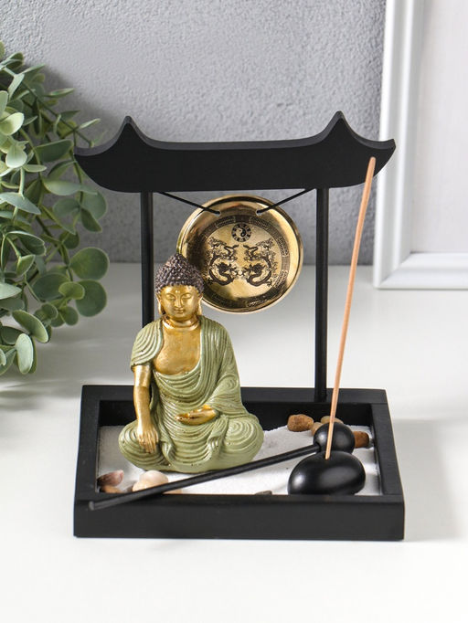 Сад Дзен "Будда в зелёном у гонга" песок+камни+аромапалочки 13,2х15х16 см
