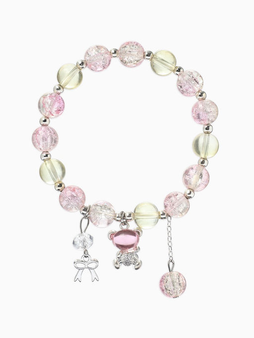 • Браслет с подвесками "Сахарный" мишка, шар №10/8, цвет розово-жёлтый в серебре