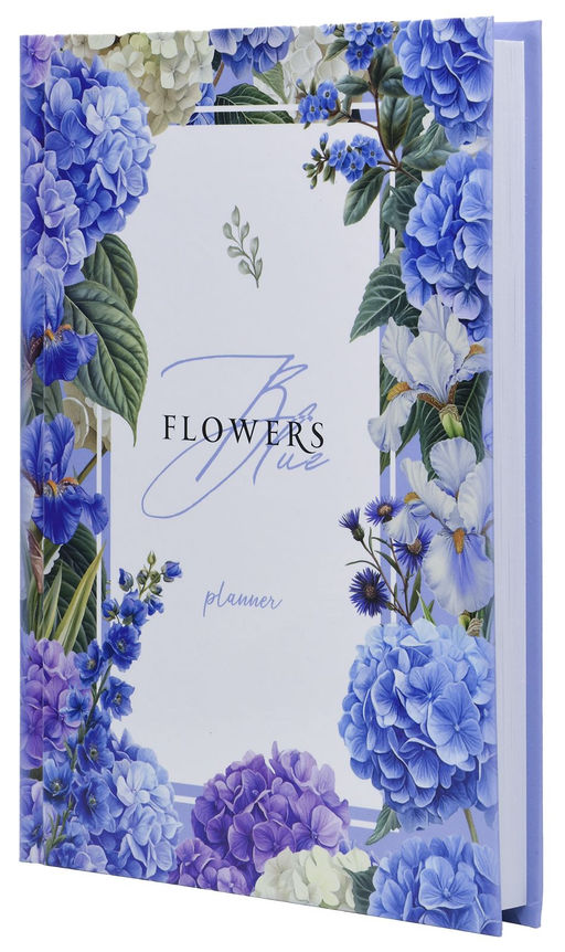 Ежедневник А5 недатированный LITE ГОРТЕНЗИИ 128 л. с дизайном, твердая обложка 7БЦ, глянце...